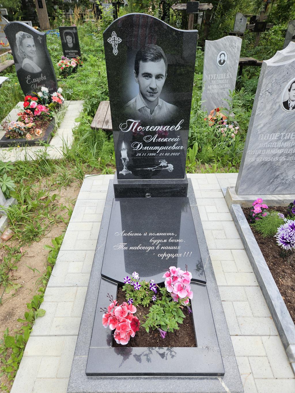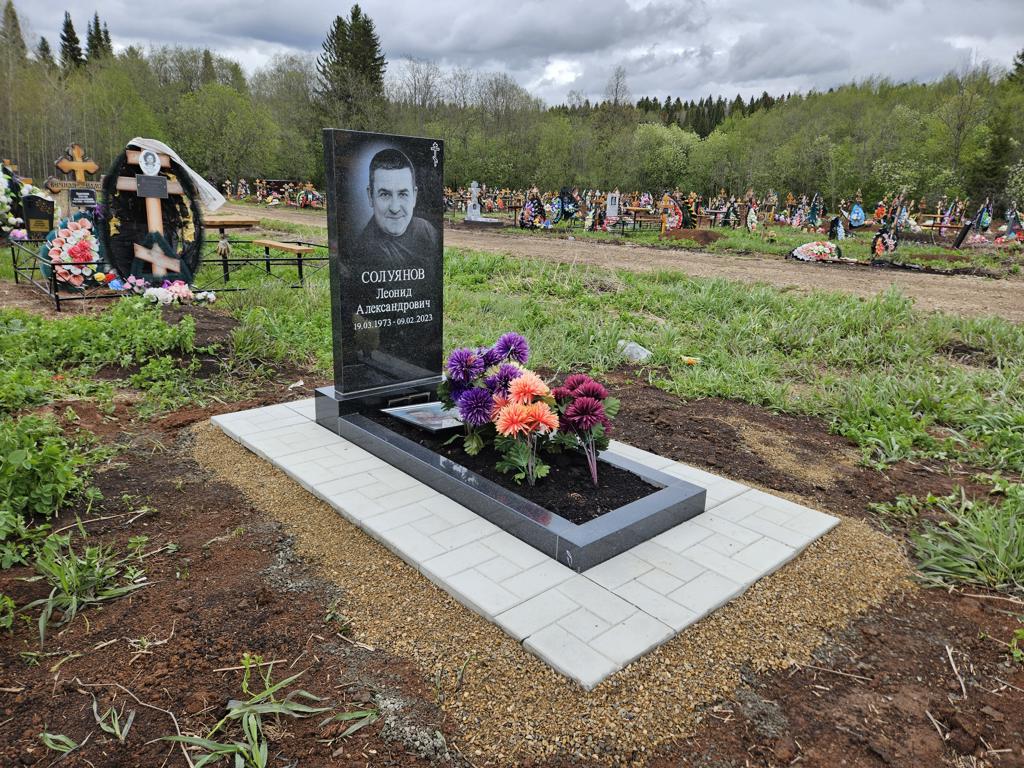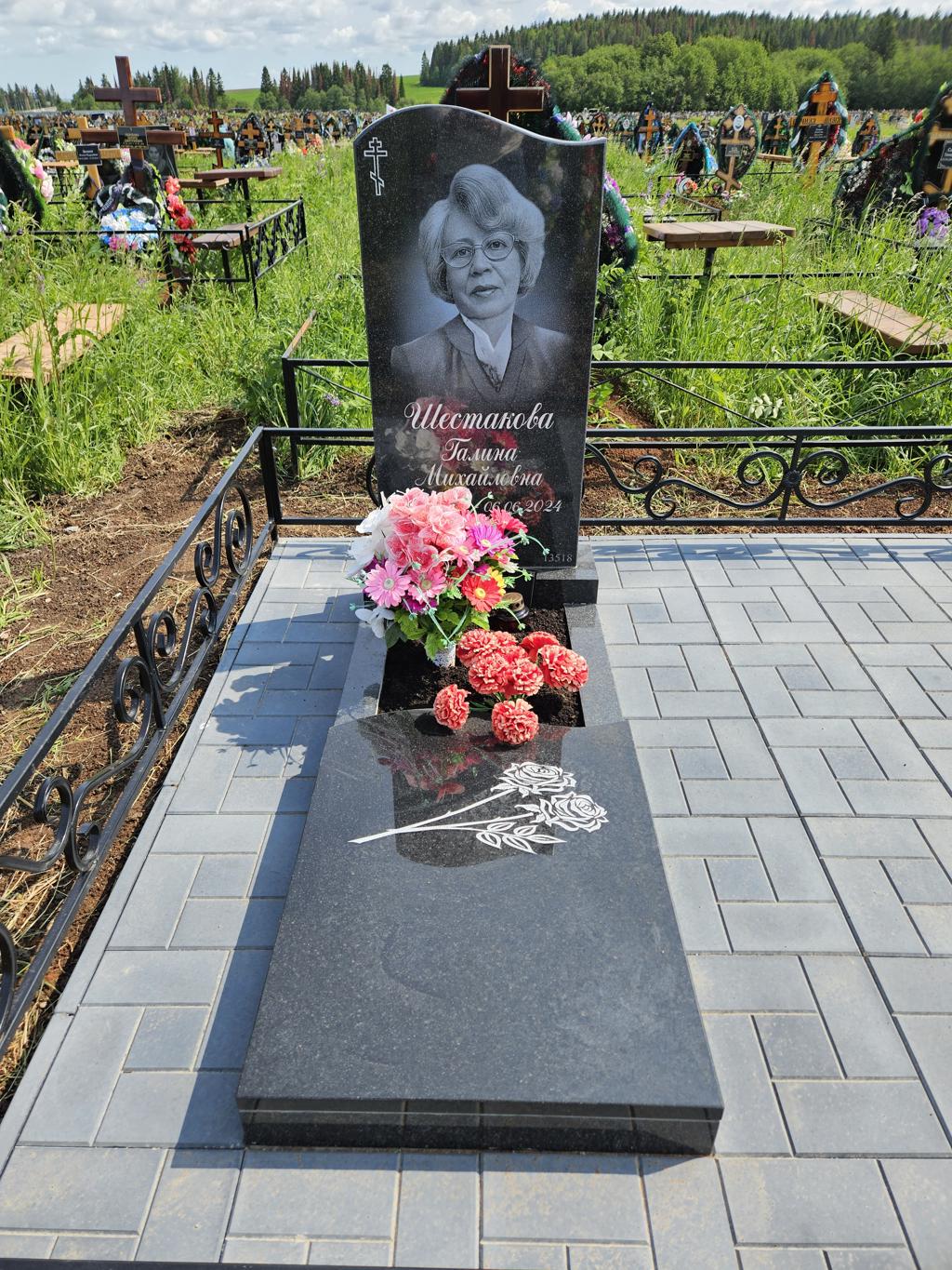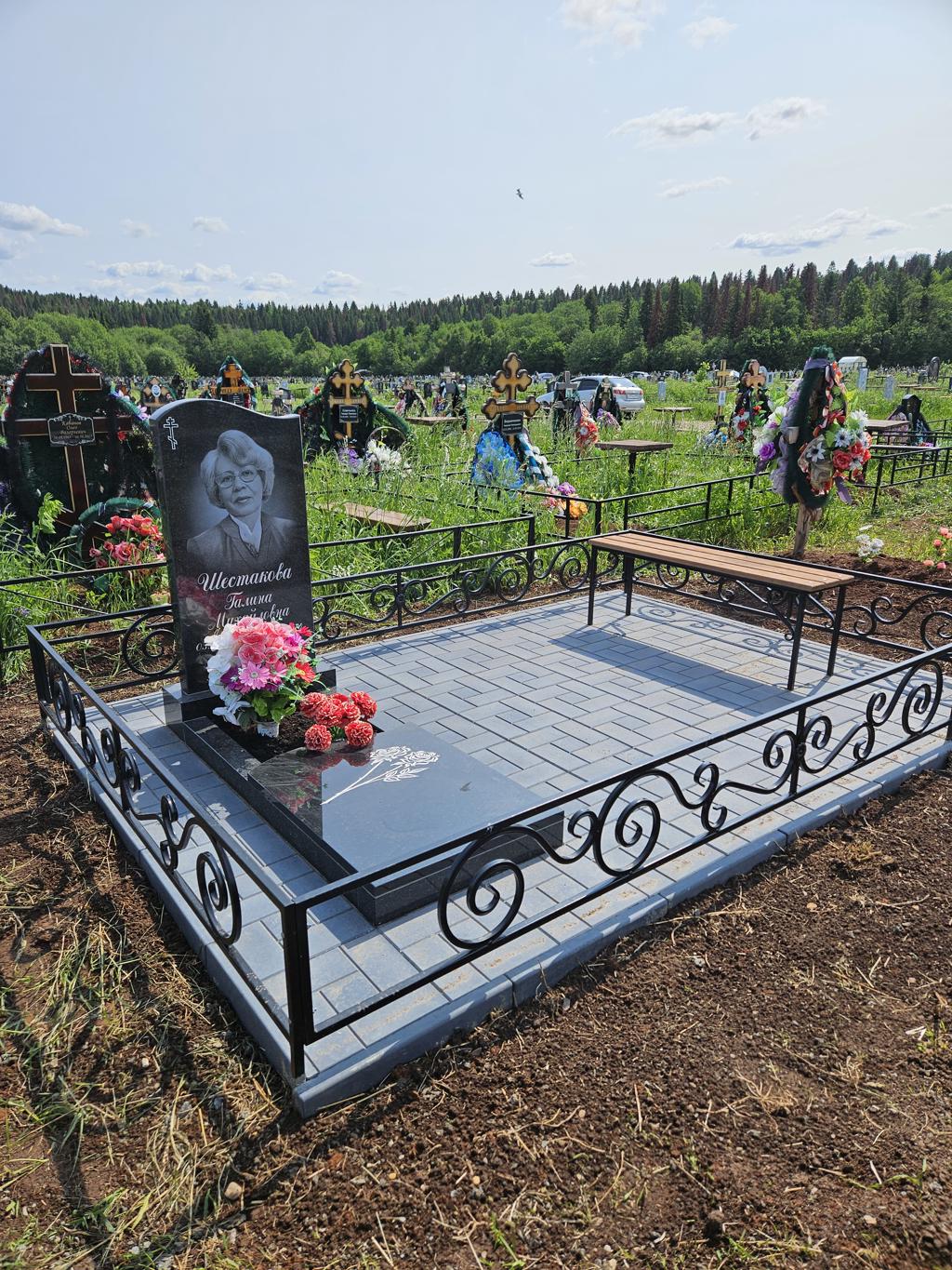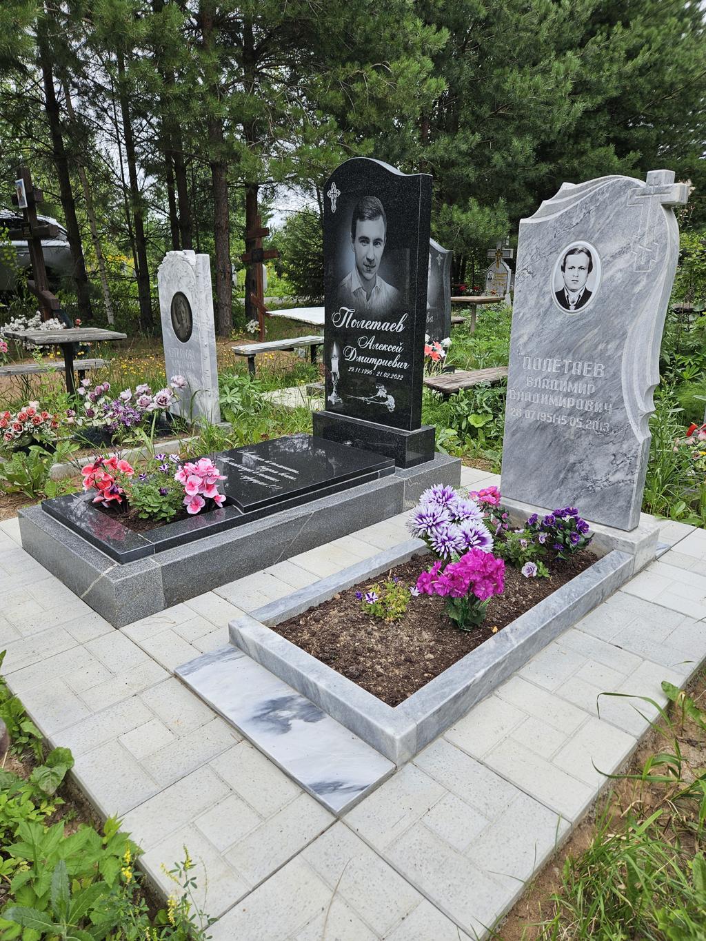 95000 р. стоит гранитный памятник с установкой на любом кладбище ПермиВысота стелы 100 см., портрет на камне (рисует художник), цветник 120 см., установка на трубы, земля в цветник