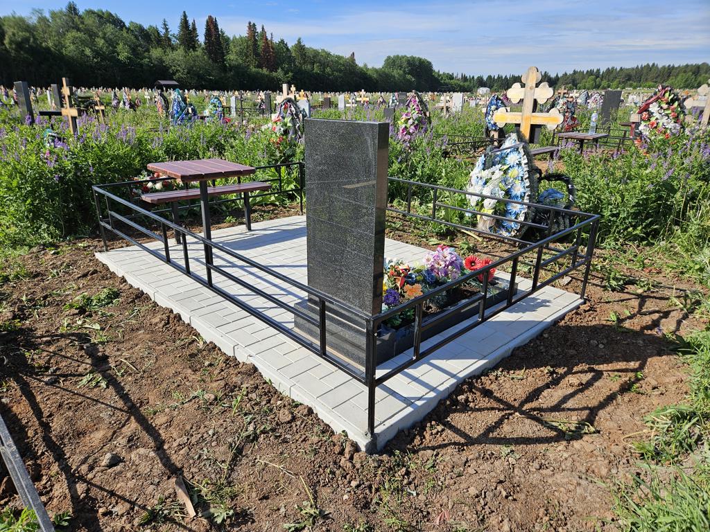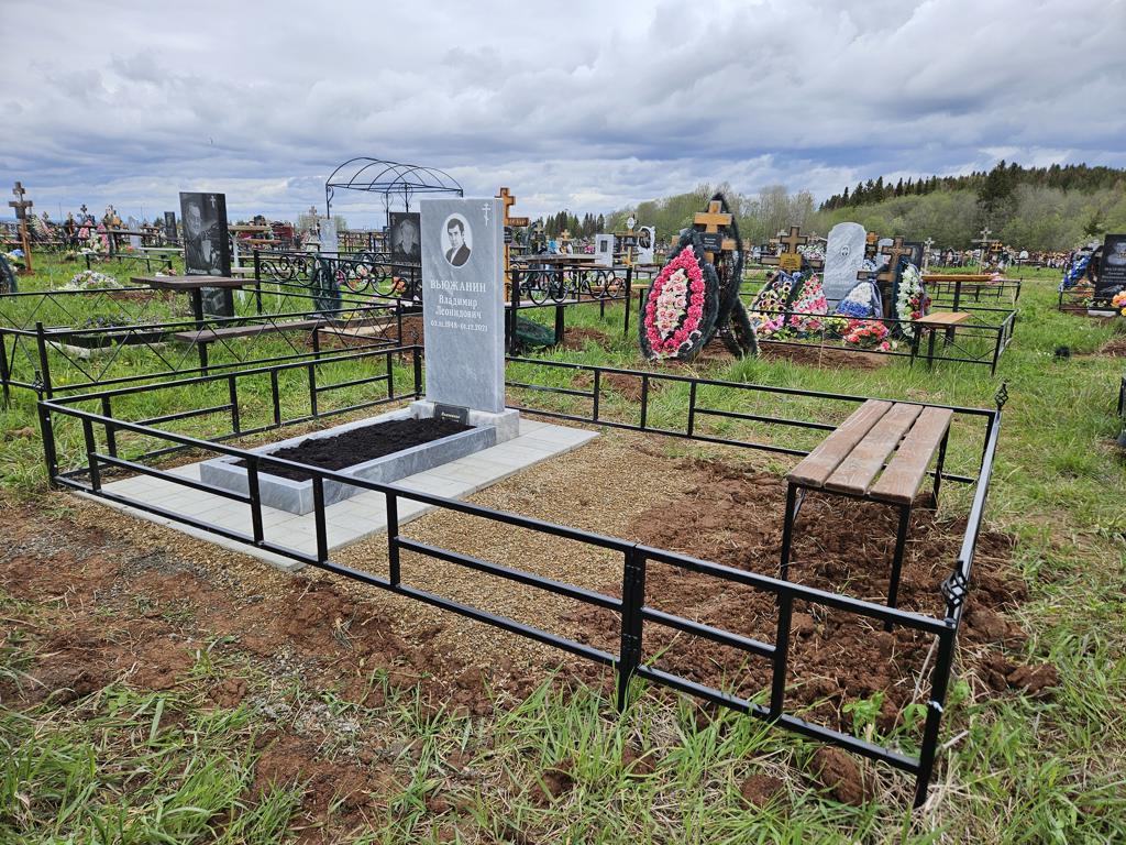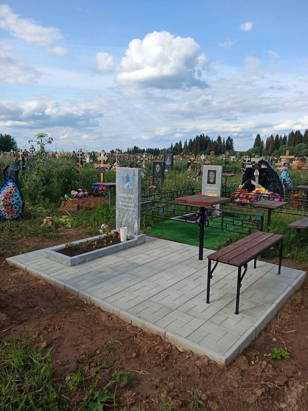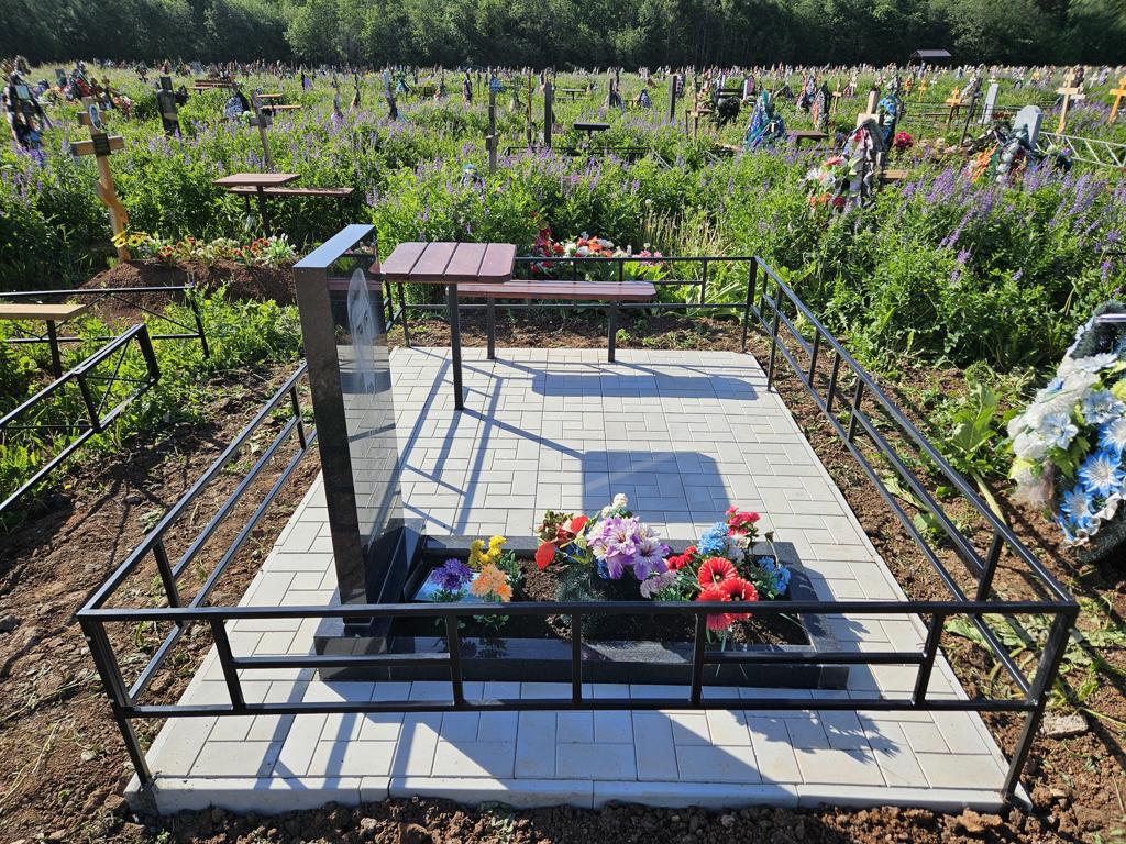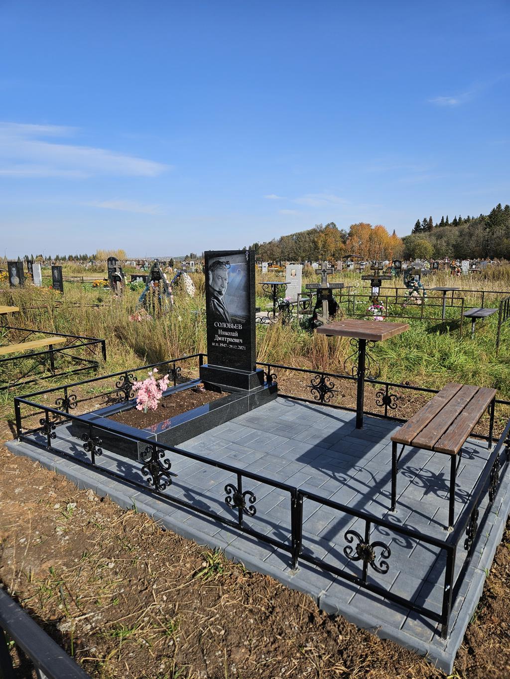 95000 р. стоит гранитный памятник с установкой на любом кладбище ПермиВысота стелы 100 см., портрет на камне (рисует художник), цветник 120 см., установка на трубы, земля в цветник