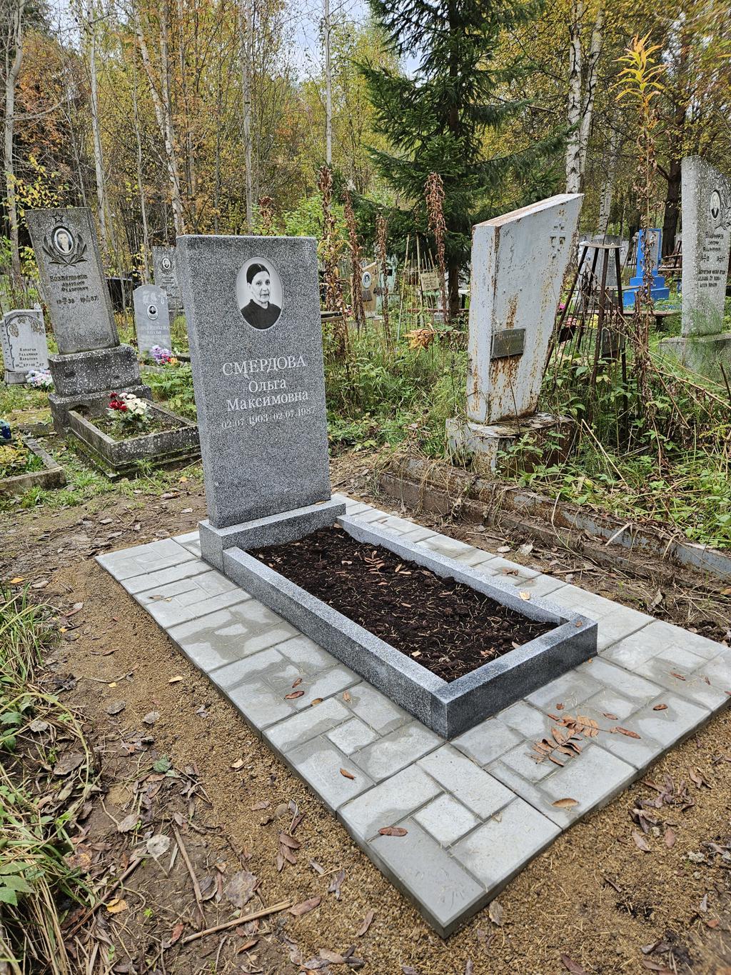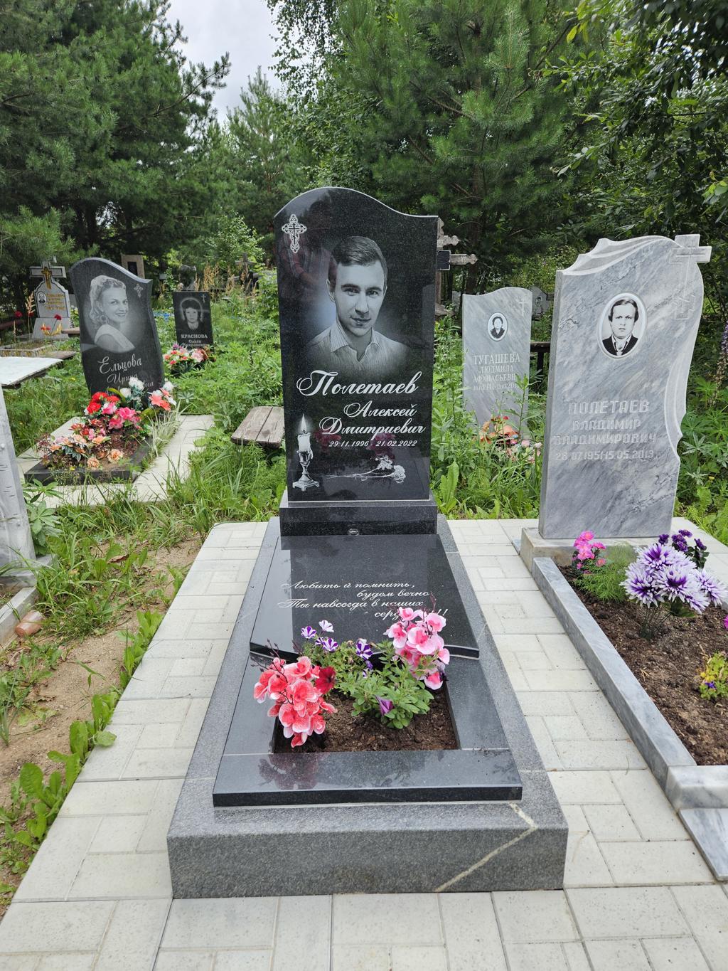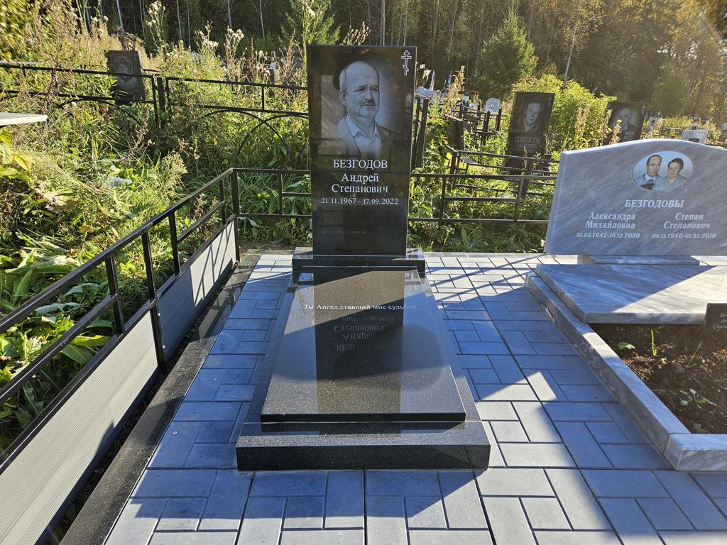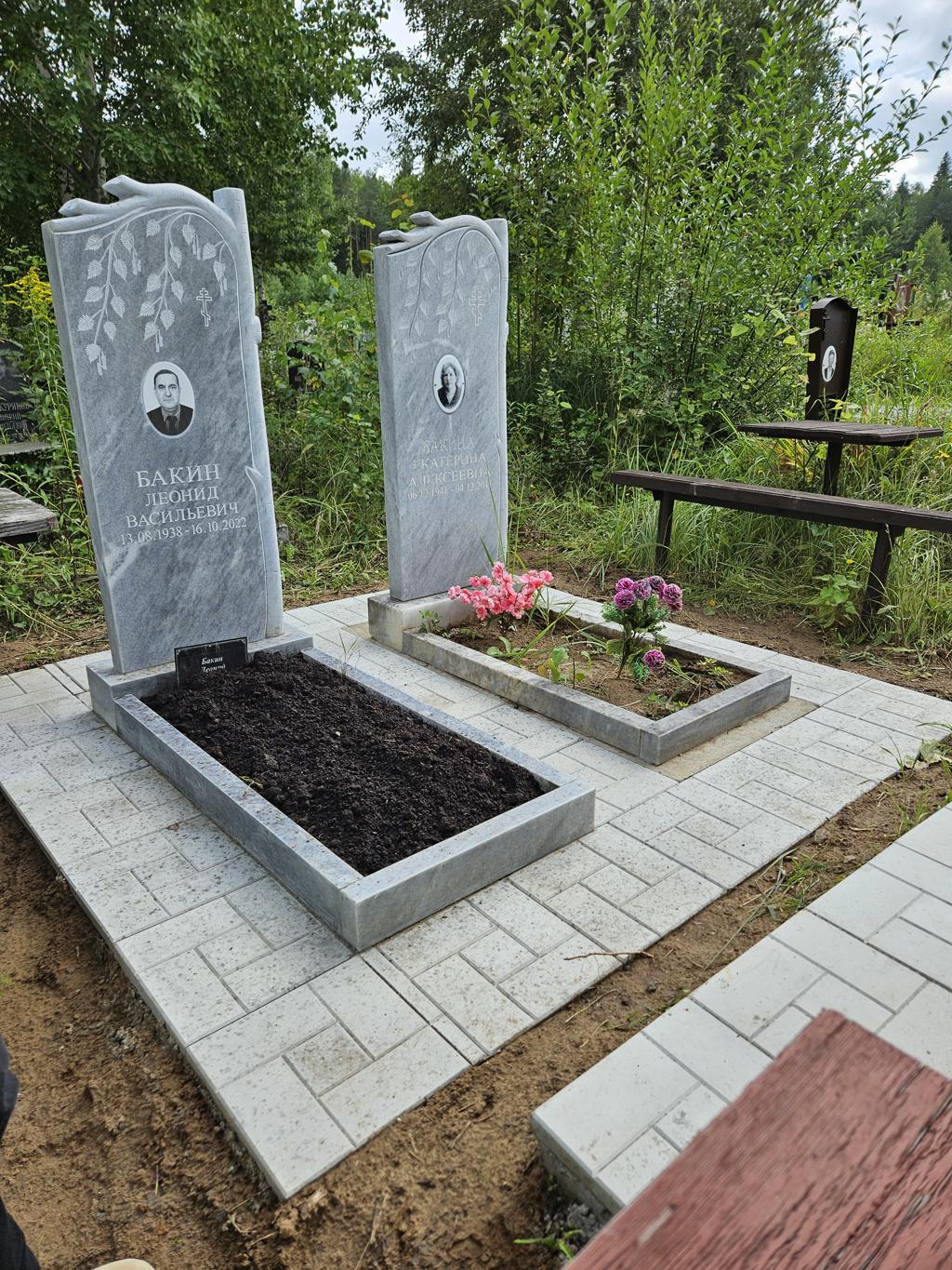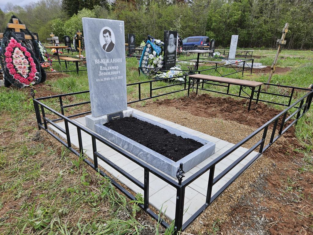 95000 р. стоит гранитный памятник с установкой на любом кладбище ПермиВысота стелы 100 см., портрет на камне (рисует художник), цветник 120 см., установка на трубы, земля в цветник