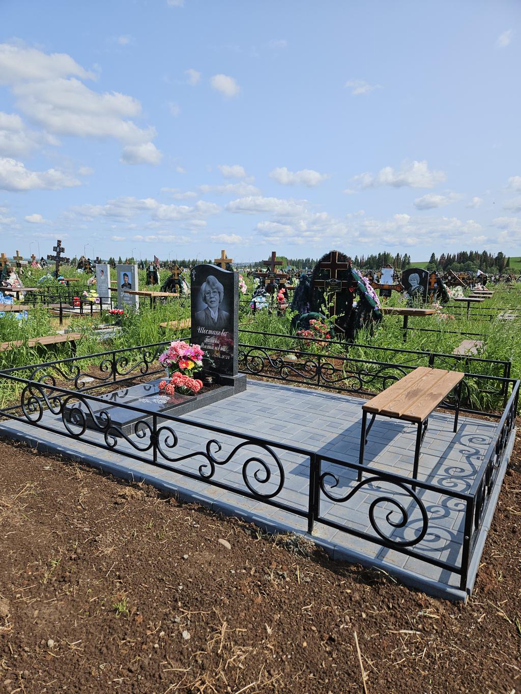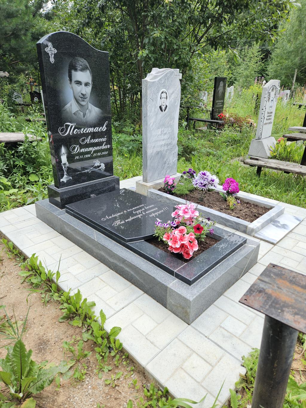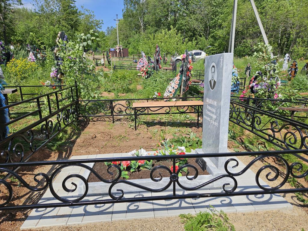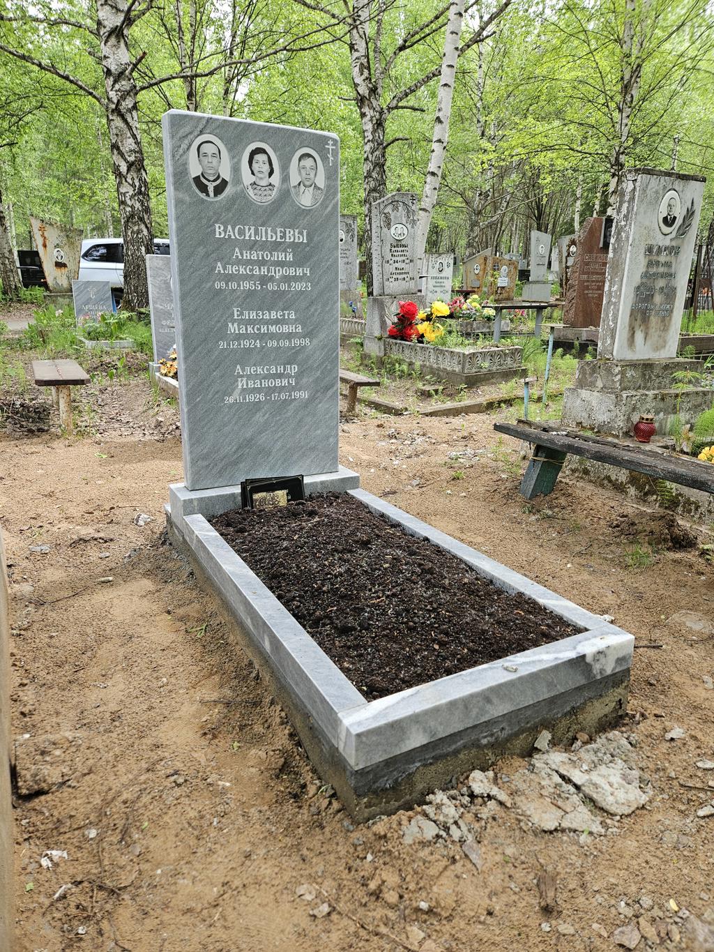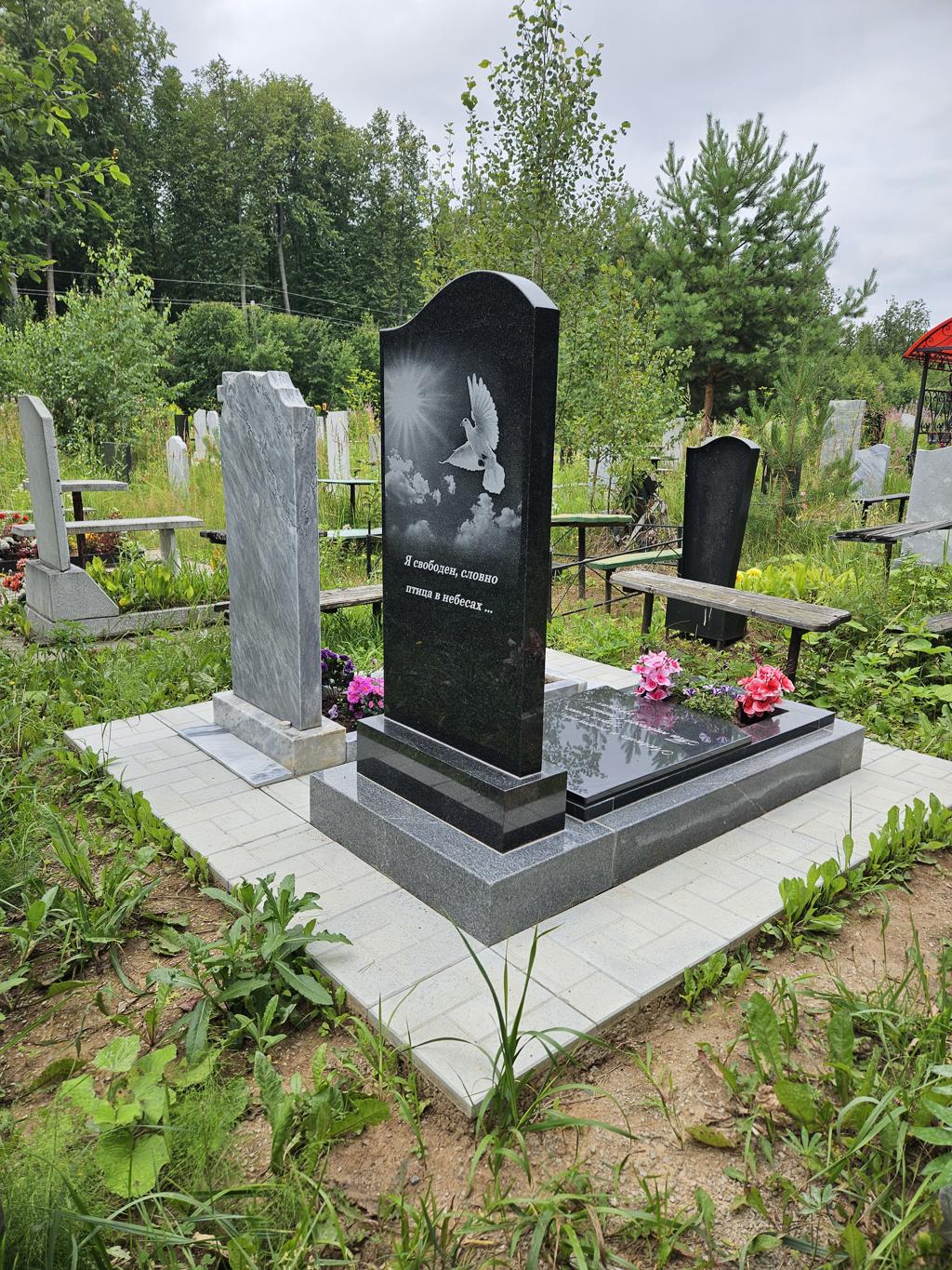 95000 р. стоит гранитный памятник с установкой на любом кладбище ПермиВысота стелы 100 см., портрет на камне (рисует художник), цветник 120 см., установка на трубы, земля в цветник