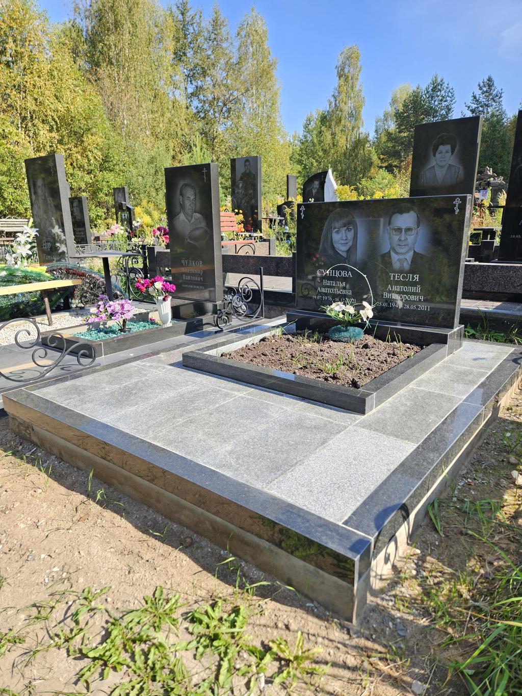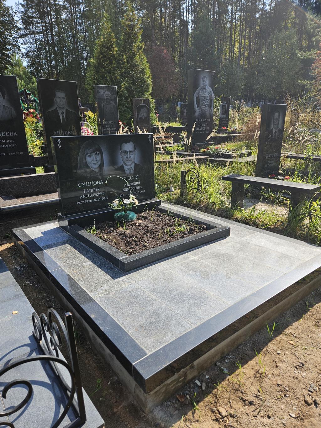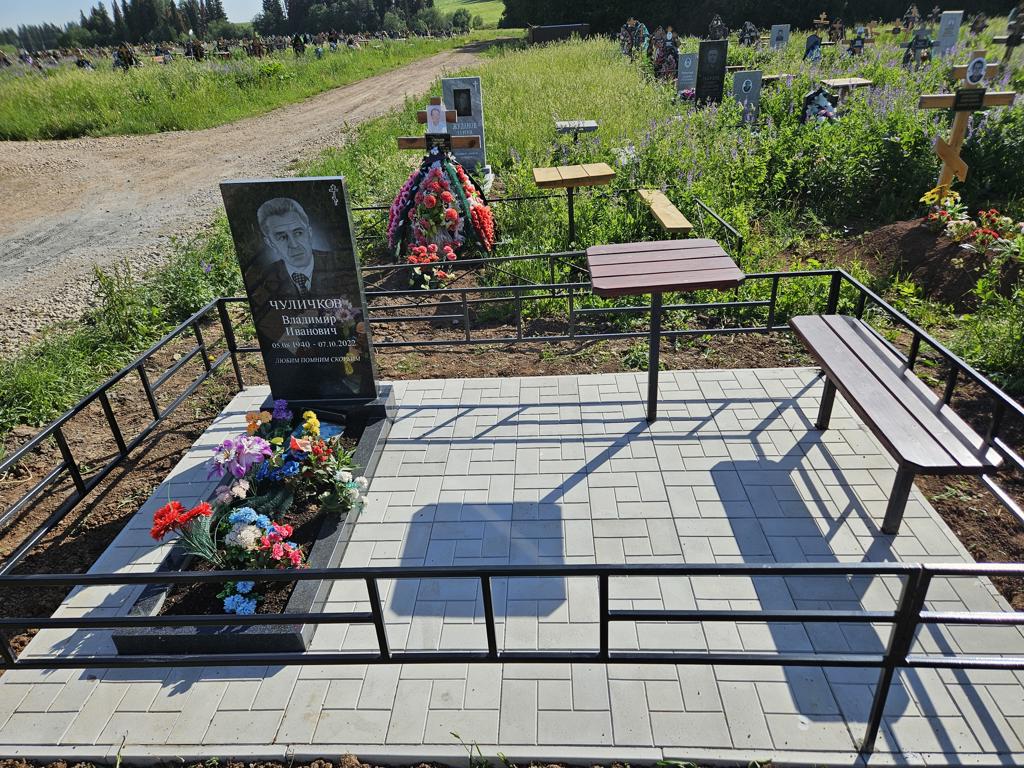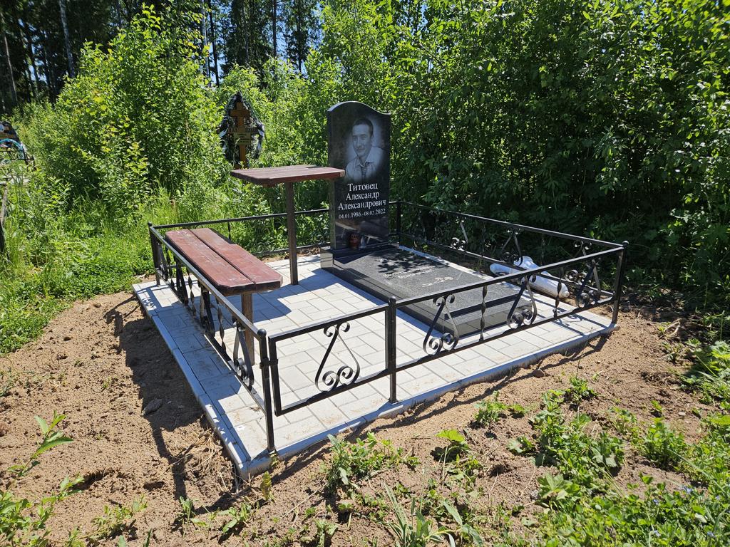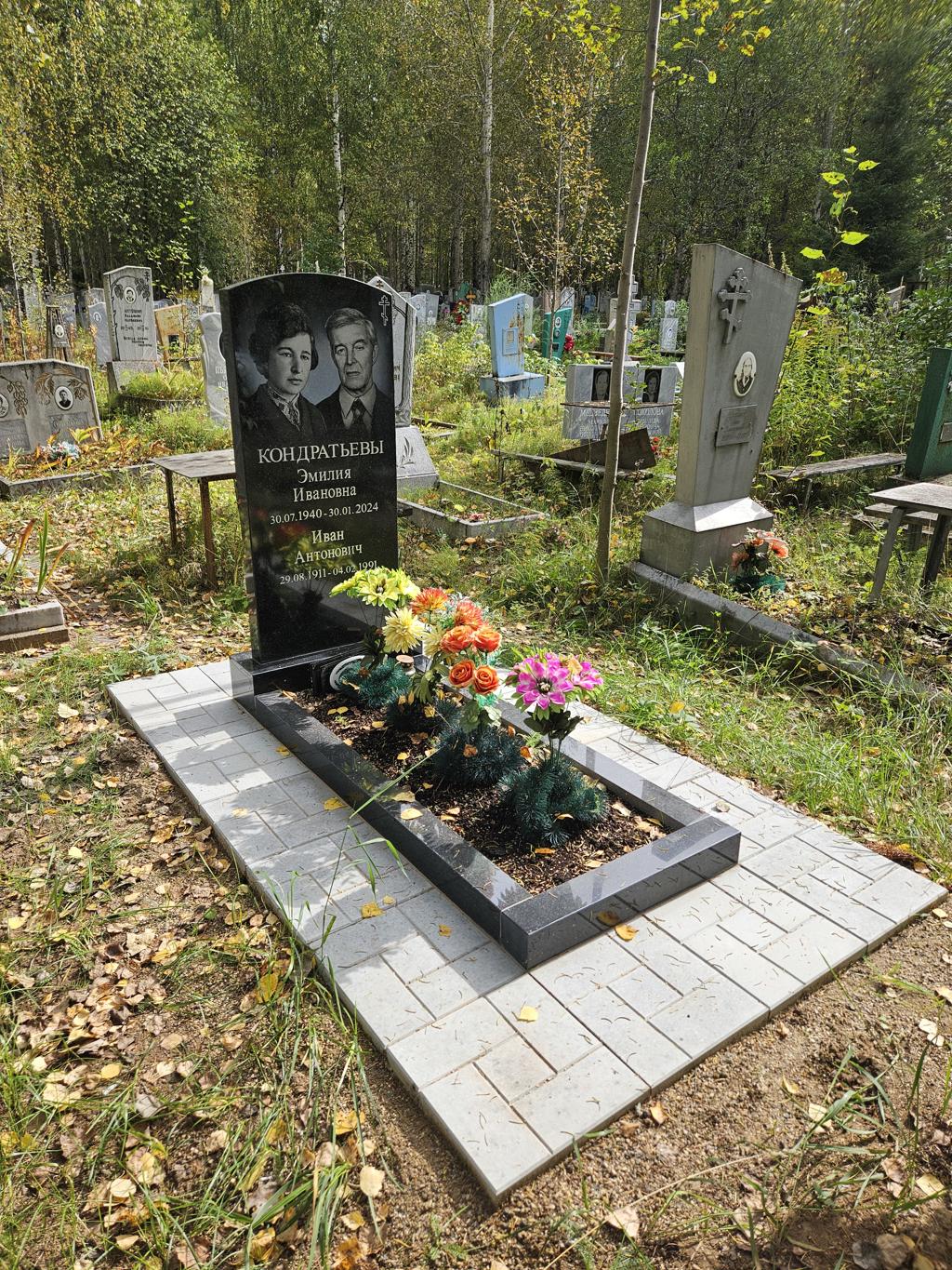 95000 р. стоит гранитный памятник с установкой на любом кладбище ПермиВысота стелы 100 см., портрет на камне (рисует художник), цветник 120 см., установка на трубы, земля в цветник