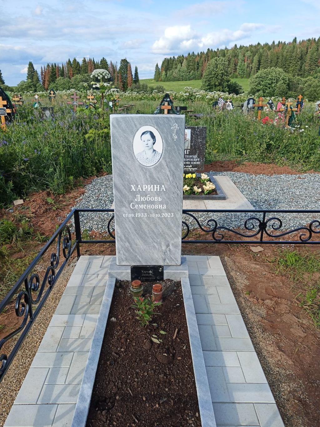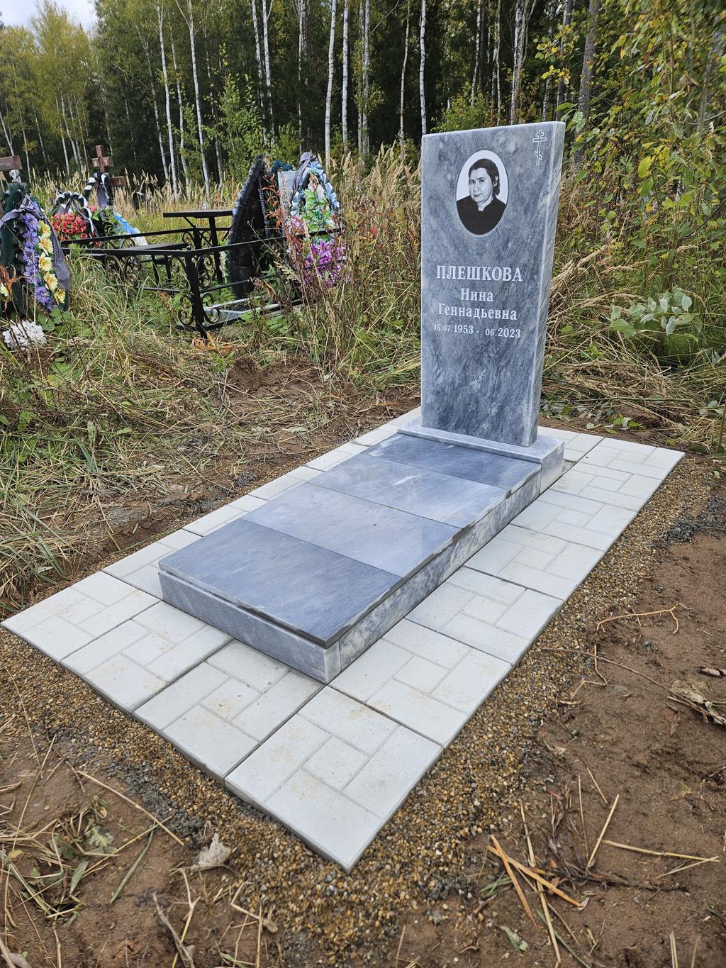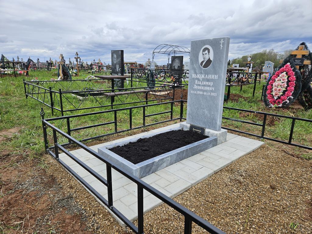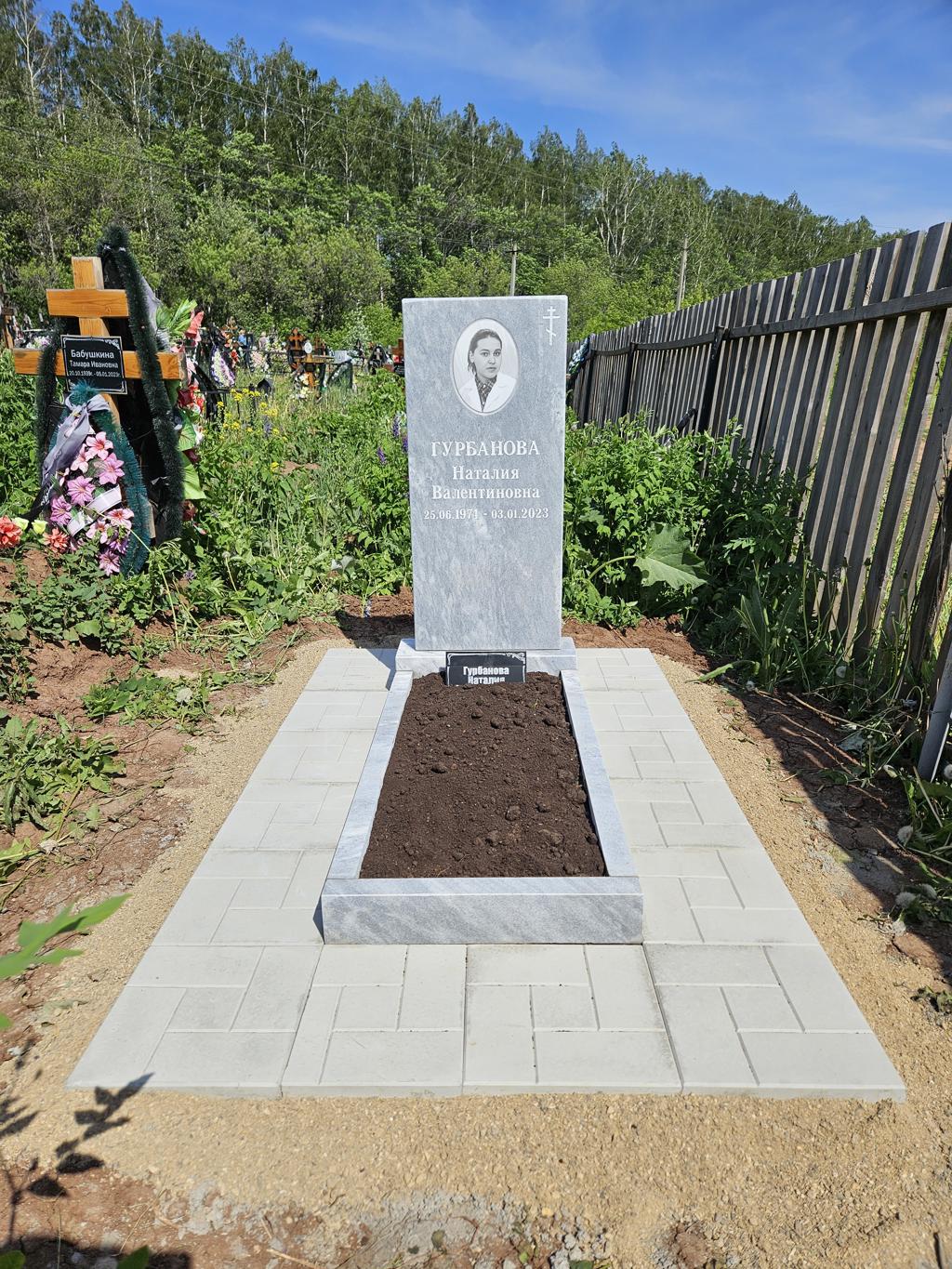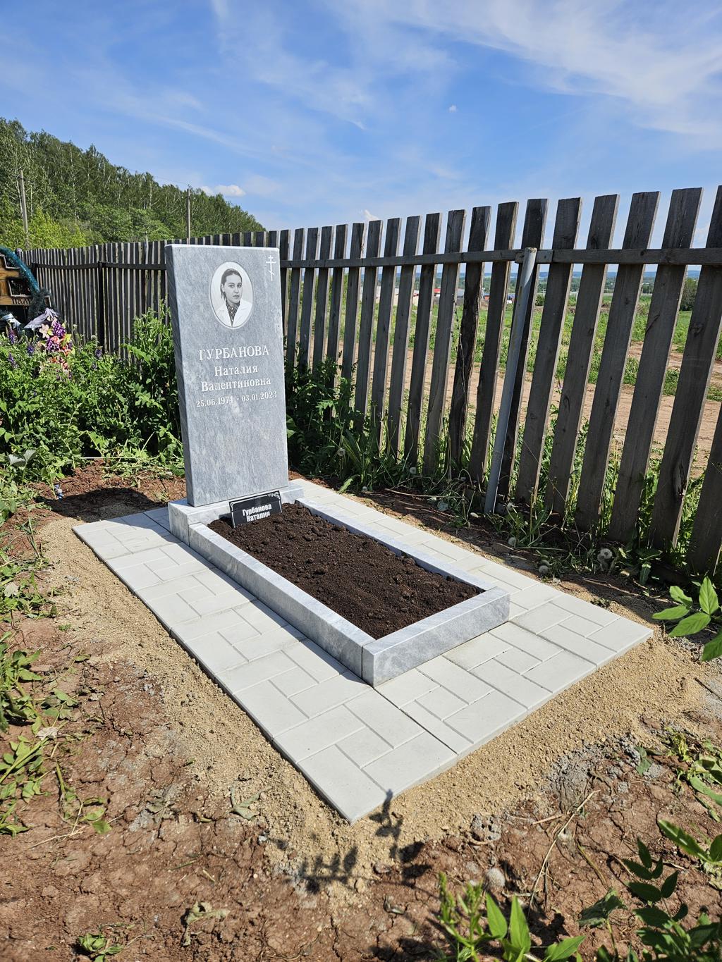 51000 р. стоит памятник на могилу из мрамора с установкой на любом кладбище ПермиВысота стелы 100 см., портрет на фотокерамике, стандартный цветник, установка на трубы, земля в цветник