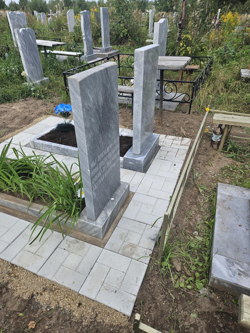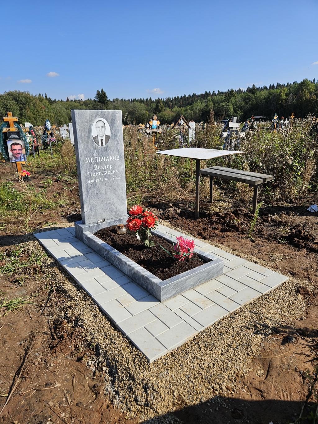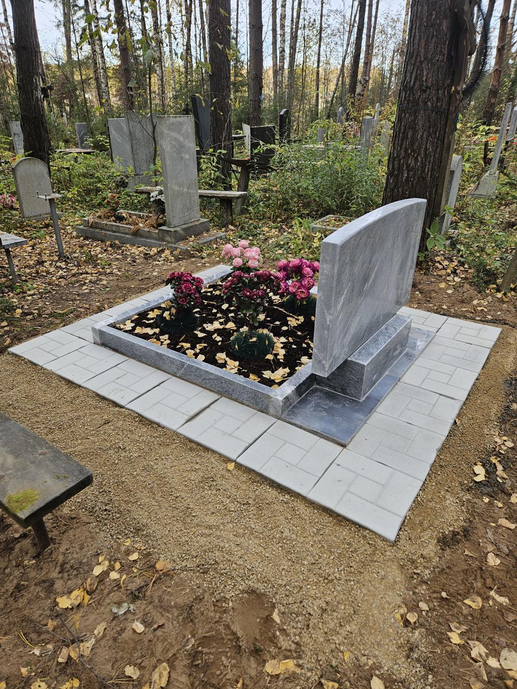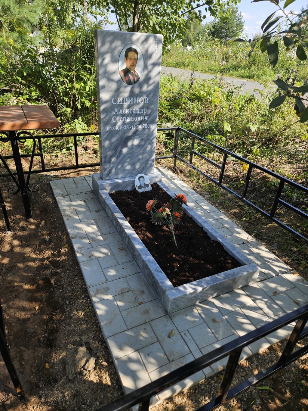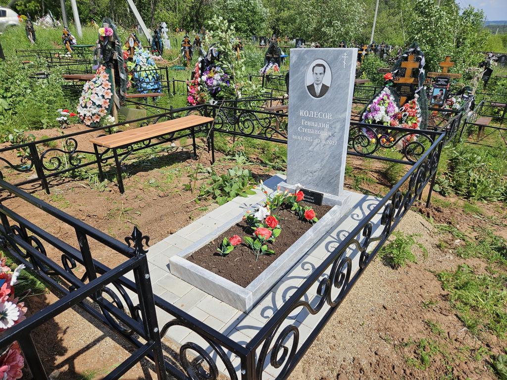 51000 р. стоит памятник на могилу из мрамора с установкой на любом кладбище ПермиВысота стелы 100 см., портрет на фотокерамике, стандартный цветник, установка на трубы, земля в цветник