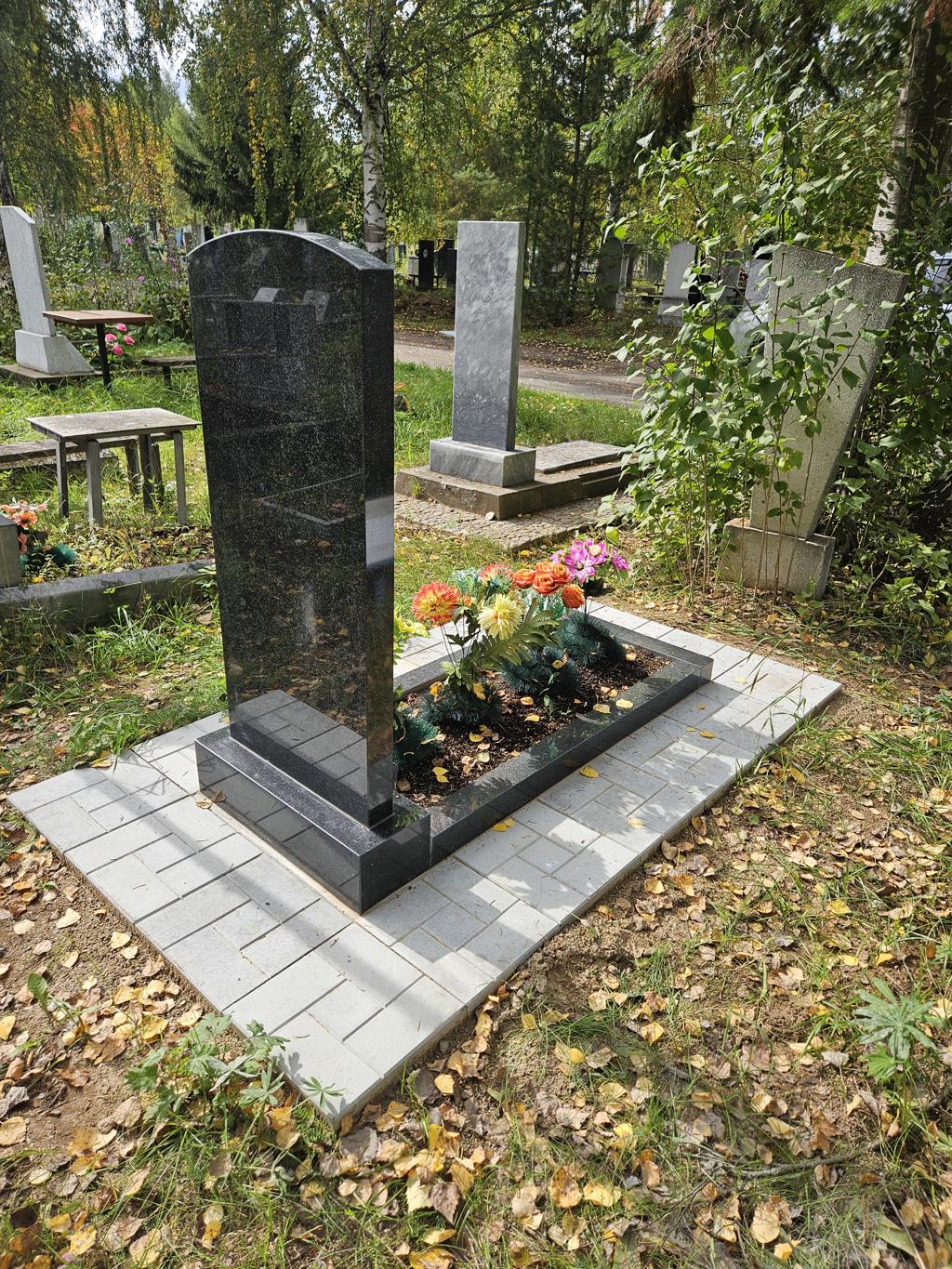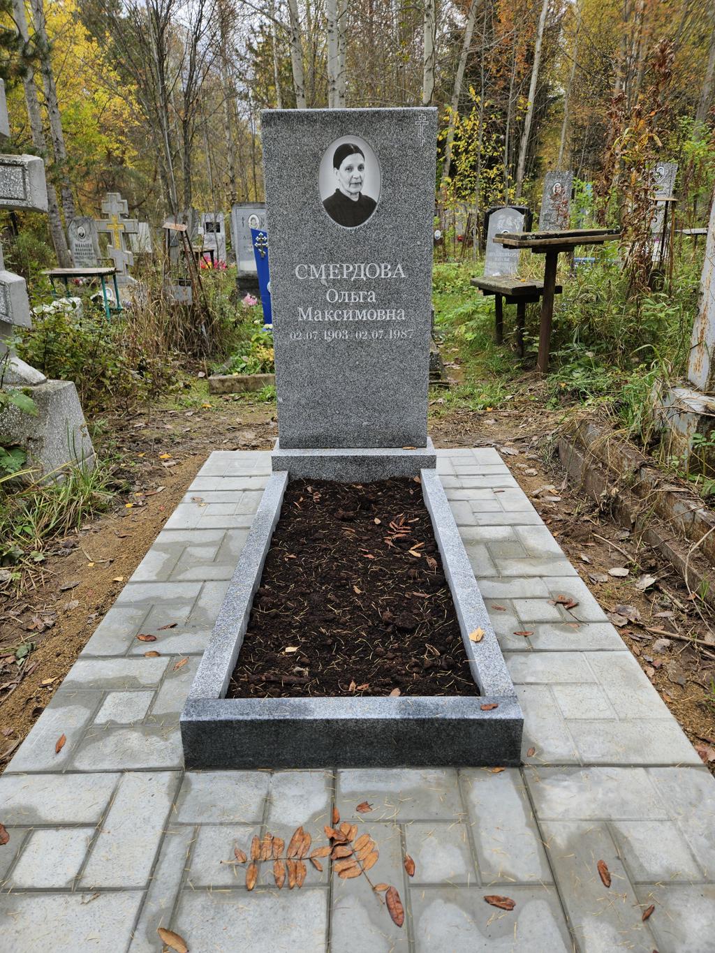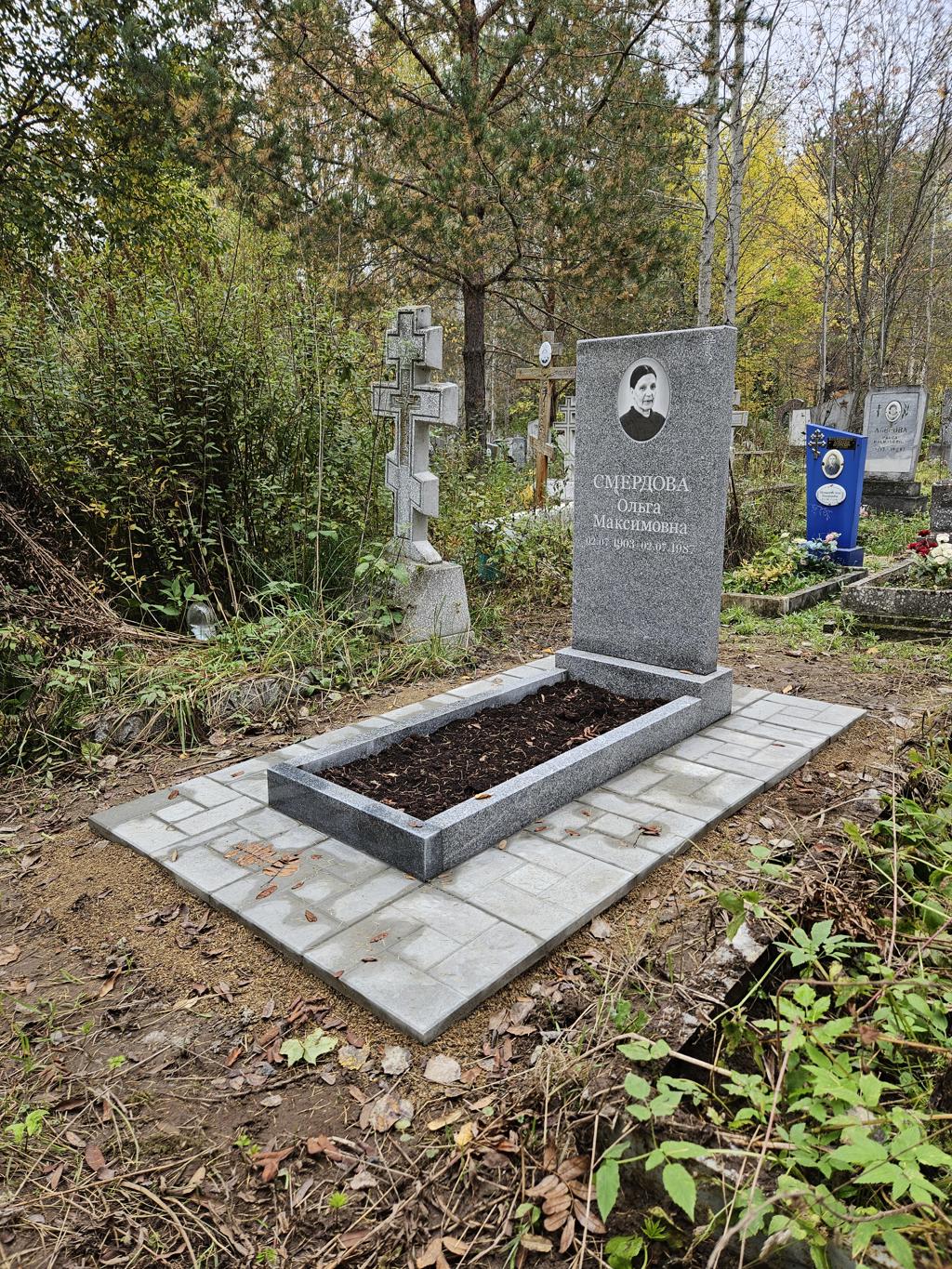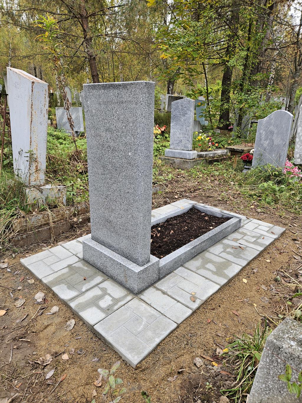 65800 р. стоит памятник из серого гранита с учетом всех затратВысота стелы 100 см., портрет на фотокерамике, стандартный цветник, установка на трубы, земля в цветник